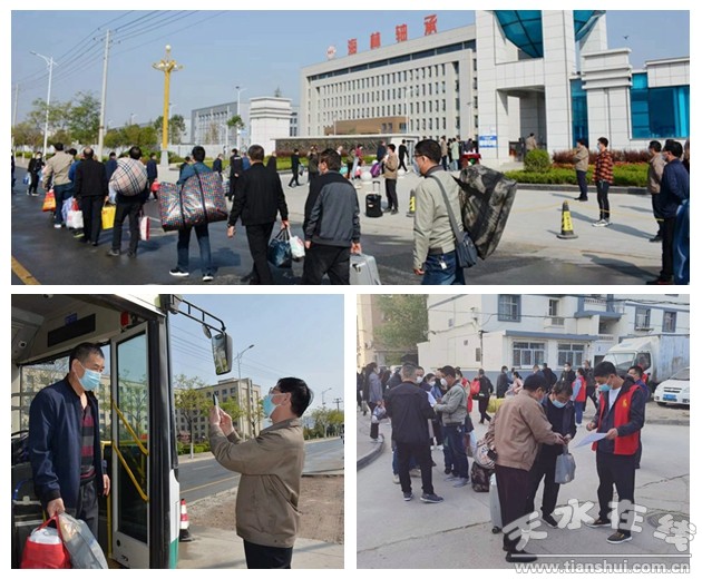 4月10日,該公司全面復工復產。上午8點,通勤車根據既定線路到指定地點接職工乘車。點名、掃碼、查驗核酸……每一名職工在工作人員的引導下有序乘車。9點,通勤車統(tǒng)一在七里墩高速路口集合,在秦州區(qū)警務人員以及經開區(qū)管委會的引導下共同前往工業(yè)園區(qū)。公司領導班子和工作人員在廠區(qū)門口一同迎接職工們返崗。下車職工排隊進入廠區(qū),并再次進行消殺、驗碼,確保復工返崗萬無一失。